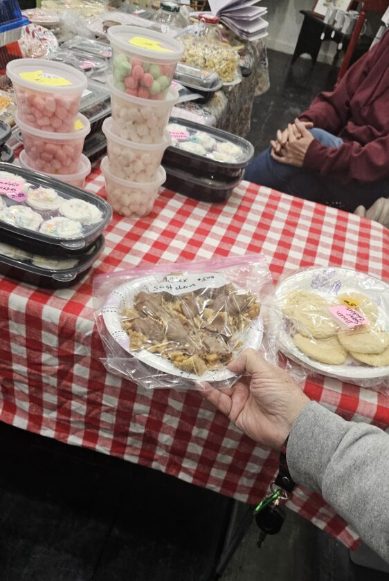 Dave Tostenrud, assisting at the table, joked about “working on the sugar cookies” as he ate a few he had purchased.