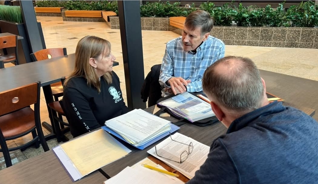 - Sue and Steve Marti speak with Doug Wortham of Minnesota Military Radio about the identification and ceremonial honoring of their uncle, Medal of Honor recipient Captain Willibald “Bill” Bianchi. (Photo by Greg Peterson)