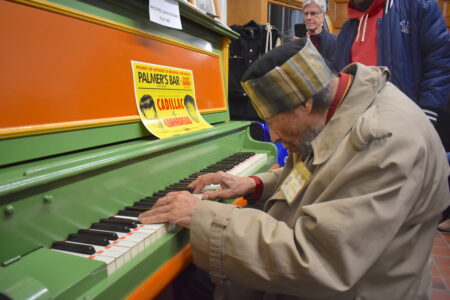 - New MMHF inductee Cornbread Harris plays Whoopie John’s piano at the hall of fame museum Saturday.