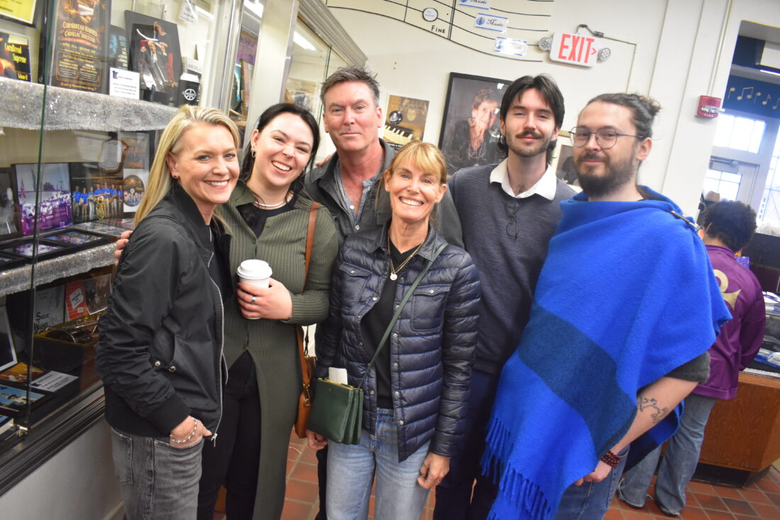 The McClellan family, relatives of 2026 Minnesota Music Hall of Fame inductee Swede Wagner gather around his display case during the hall of fame’s showcase Saturday. The McClellans were excited to see their relative honored. In photo left to right: Deb McClellan, Greta McClellan, David McClellan, Amy McClellan, Liam McClellan and Connor McClellan.