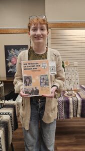 - New Ulm ninth-grader Evelyn Nosbush holds a fundraising flyer at the Music & Makers market Saturday at Lykke Books. Nosbush and her family are raising $42,000 for “Marshmallow,” a Labrador retriever being trained to detect latex. (Photo by Amy Zents)