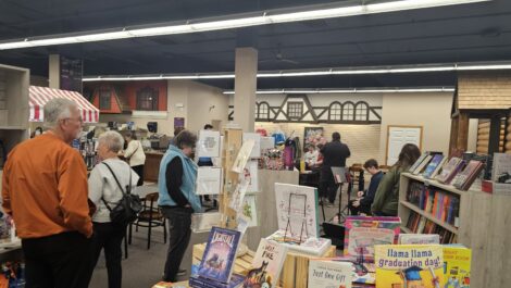 Shoppers browse the shelves and vendor pop-ups at Lykke Books during the recurring Music & Makers market. (Photo by Amy Zents)