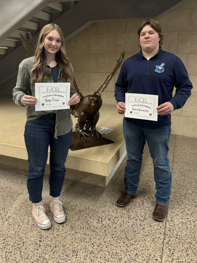 New Ulm High School students Madilyn Portner and Hunter Lewandowski received the MSHSL ExCel Award this year.