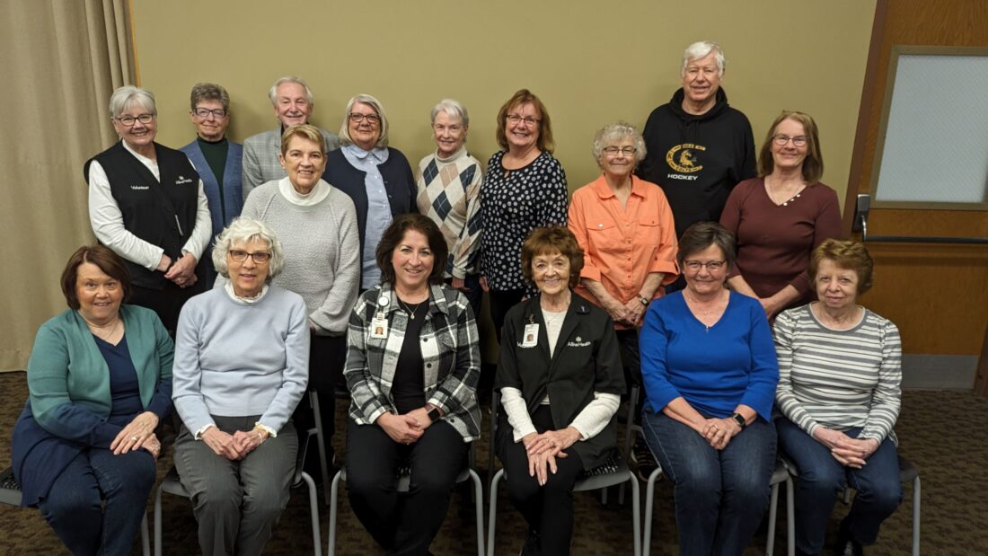 Picture taken at a recent Volunteer celebration: Front Row left to right: Lynn Martinka, Barbara Freitag, Vonda Dulas, Monica Mueller, Sharon Heck, Carolyn Bertrand Back Row left to right:Nancy Paulson, Lois Simmons, Ben Pieser, Marge Schmidt, Linda Starke, Sharon Babel, Wendy Fox, Carol Behrens, Huon Newburg, Helen Schweiss