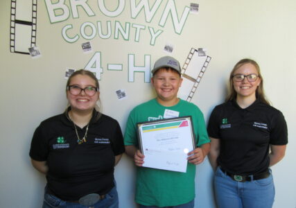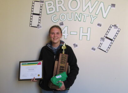 Kylie Fischer of the North-West Wildflowers 4-H Club received the 4-H Citizenship award during the Brown County 4-H annual award celebration. Fischer organized a grain bin and farm safety training. Her initiative earned her recognition at both the County and State Fairs, and her efforts have already influenced safer practices among local farmers.