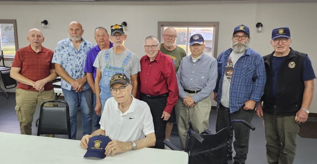 The VFW Post 1648, covering Brown County as well as parts of Nicollet and Blue Earth counties, honored many of it's long term members during its annual fall picnic. Membership ranges from 25 to 75 years. In the photo, seated: Ken Schaefer 25 years. Front row left to right: Stan Gunnerson 45 years, Larry Dauer 40 years, John Ingebritson 40 years Back row left to right: Brad Reinhart 25 years, Ken Briese 45 years, Dennis Nordby 25 years, Don Borstad 25 years, Brad Jorgenson 20 years, Tom Flatau 25 years The following post members were unable to attend the 2025 Fall event: 75 years: Denny Warta 50 years: James Hoffman, Mark Konz, Arlen Keute and Steve Konz 45 years: Don Mickelson, Wayne Augustine and Everett Dekramer 25 years: Loren Gag, Don Henning, Francis Rieger, Don Schaefer, Ramona Widmer and Mark Rieger 20 years: Robert Bute, Les Aldridge, Earl Allen and Robert Fischer 5 years: Russ Walker