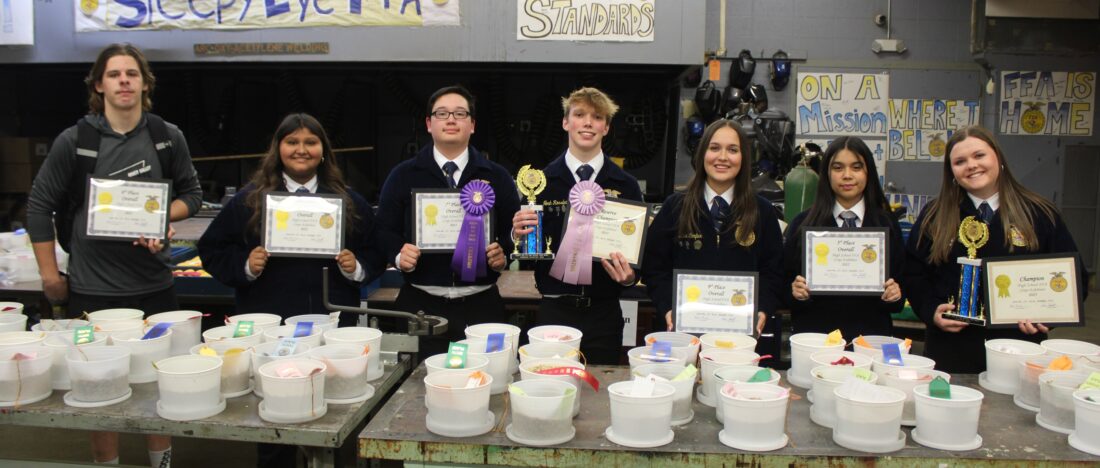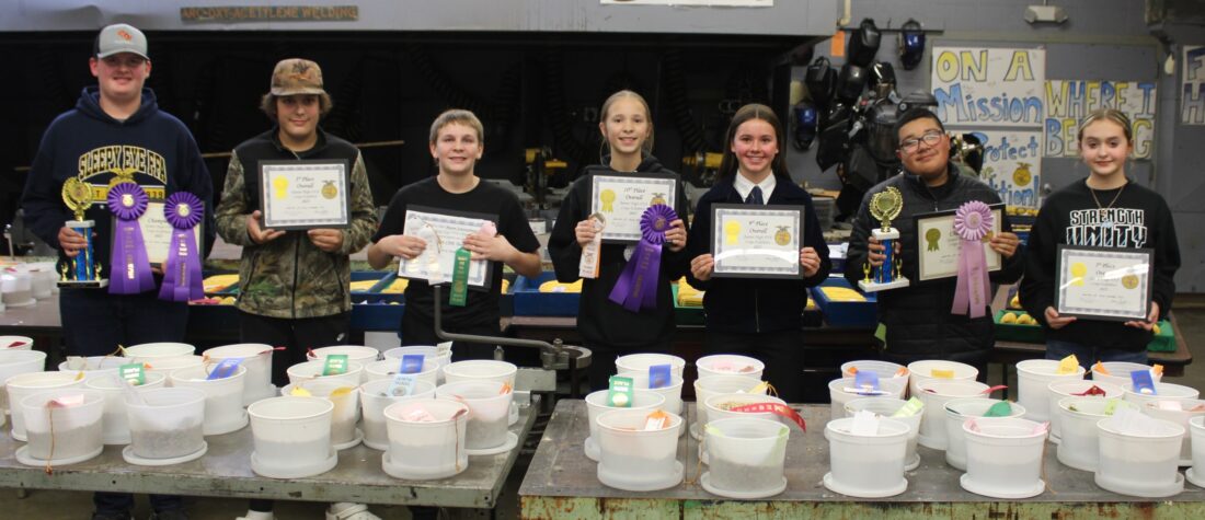 The Sleepy Eye FFA Crop Show Junior High Top Ten Award Winners include l to r: Carson Sellner (Champion), Kallin Kuelbs, Mason Schottenbauer, Madelyn Jensen, Aubree Rathman, Alex Dominguez (Reserve), and Madelynn Mangen. Not Pictured: Grayson Hansen, Reid Romberg, and Liliana Trevino. Submitted photo.