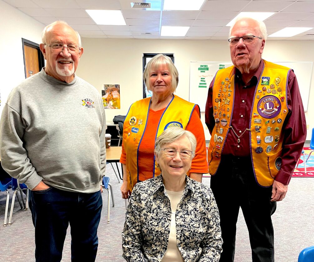 Pictured, Left to Right, Lion Roger Klockziem; KidSight chair, Lion Annette Haynes and Lion Bob Schirlinger. Seated front, Dorothy Klockziem. Also screening the children's eyes were Lions Glen Setterholm and John Micheel.