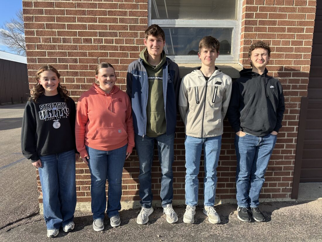 The Sleepy Eye FFA Poultry Team placed first out of 22 teams at Little I on March 27. Pictured l to r – Madelynn Mangen, Ava Sellner, Kayden Klein, Mateo Hornsby, and Carsten Nienhaus.