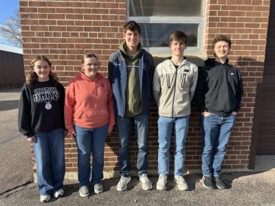 The Sleepy Eye FFA Milk Quality and Products Team was the Top Scoring Team in their Competition at SDSU in Brookings. The team placed first out of 28 teams. Pictured l to r – Carter Lazatin, Jaelynn Schauman, Jace Schauman, Megan Sellner, Callie Evers, and Ava Kunkel. Submitted photo
