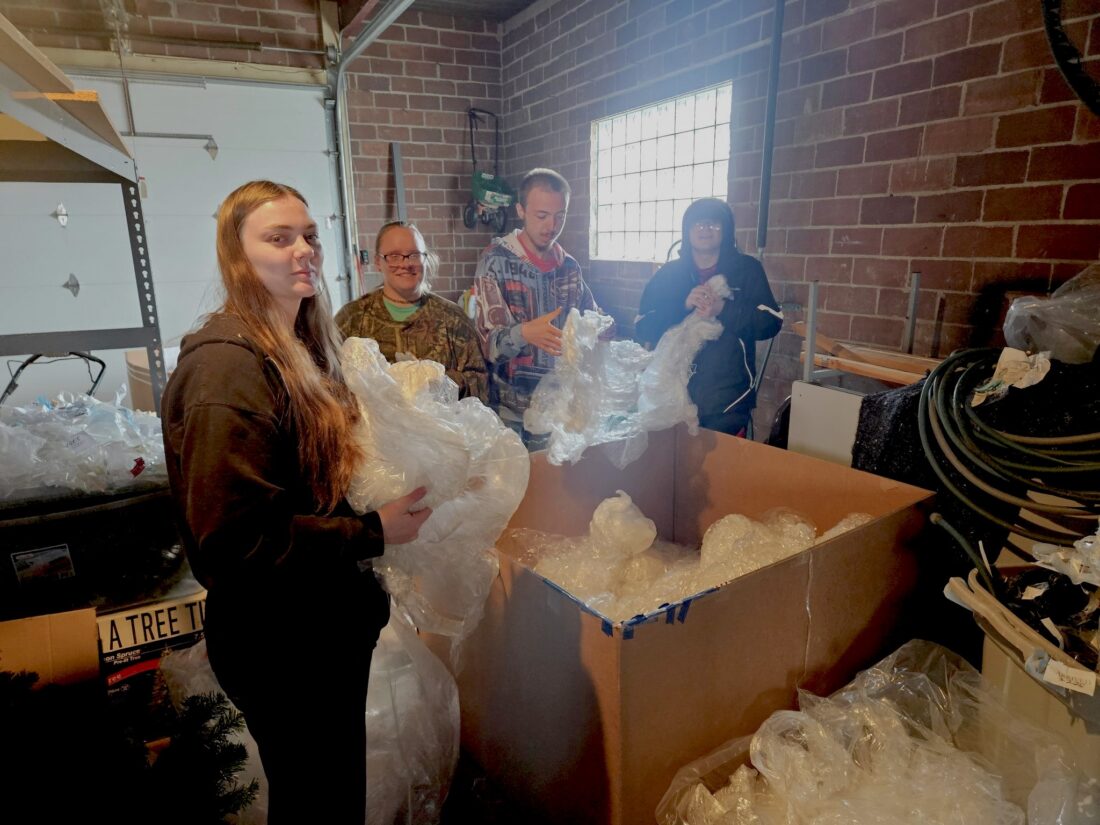 River Bend Students sorting plastic delivered from Dettich: Right to Left: Isabelle Merkel (12), Ava Weston (12) Elijah Nelson (12) and Erhich Knaack (12). Photo by Jennifer Isaac