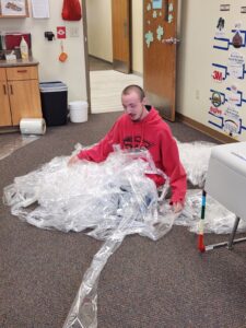 - Elijah Nelson 12th grader sorting plastic in the classroom for the recycling challenge Photo by Elise Cronin