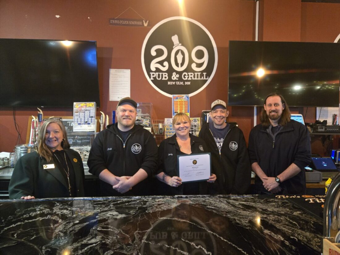 NEW ULM – The Willkommen Committee of the New Ulm Area Chamber of Commerce visited 209 Pub & Grill to celebrate new ownership under Becky and Nick Portner, a mother-son team continuing a well-loved local tradition.