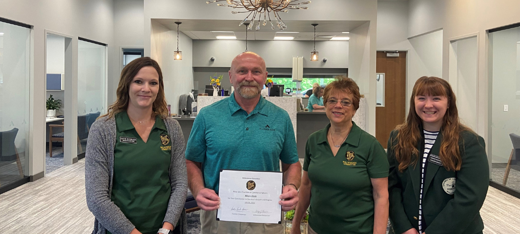 NEW ULM — Everyone has been affected by the pandemic, but Alliance Bank in New Ulm did not let it stop their plans of building a new bank. The Willkommen Committee of the New Ulm Area Chamber of Commerce received a warm welcome and celebrated the new building with a ribbon cutting ceremony! Bob Reuter, President of Alliance Bank, joined the committee and told them all about the beautiful new building. Starting with the more convenient parking lot, easier accessibility for all customers, and customer space separate from working offices. There are 2 floors in the new building but everything customer related is handled on the main level. This is the best bonus for their customers, as some did have to take the stairs in the old building for some banking needs. Another interesting aspect for the bank is that the new building became the operating hub for all of Alliance Bank. Previously loan operations had 48 employees spread out between 4 buildings, including a building in Courtland that was donated to the city. All of the loan operations, deposits, finance, between all of their 6 locations, also now all go through the New Ulm bank. This created new operations positions in New Ulm and created growth opportunities for their employees. Alliance Bank also has locations in downtown St. Paul, Red Wing, Madelia, Hanska and Lake City. The final move to the new bank was on September 11th of 2020, when they closed the bank for the day, what was left in the old building got moved over the weekend and then they opened up on Monday in the new bank. Bob highlighted that the success of the bank is mainly due to dedicated employees and great customers.