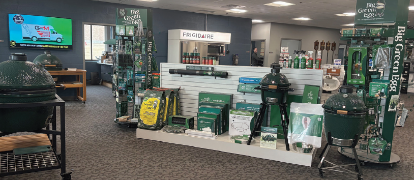 GSM has a beautiful showroom for their kitchen and laundry appliances, Green Egg grills, and more for customers. “We feel the charcoal Green Egg grill is a lifetime purchase. They last so good that we end up selling more accessories and charcoal than grills,” said Gag.