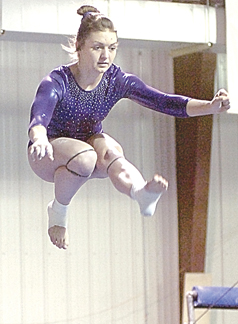 “I think they were definitely a little bit tired after having the back-to-back meets,” Eagles’ coach Kortney Peterson said. “We were ahead on vault and bars and we fell behind a little bit on beam, the floor was our usual strong event.”