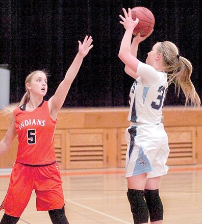 Brianna Polesky, of the Indians, hit a 3 and was immediately followed by a 3 from a few steps back of the arc by the Cougars’ Abby Jemmings for the 17-13 Indian lead.