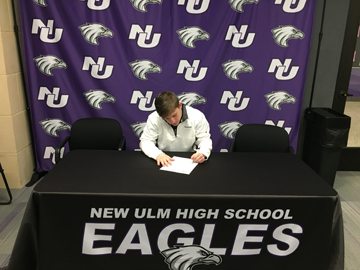New Ulm High School’s Jacob Beranek signed a letter of intent to play football with Waldorf University.