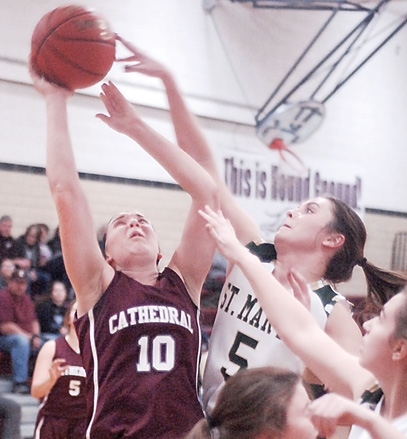 The Knights opened the second half on a 16-1 run before Schommer hit a 3 for the only Greyhound basket of the second half. Jenna Hotovec added the other second-half points for Cathedral earlier on a pair of free throws.