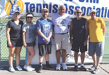 The New Ulm Tennis Association held its annual doubles tournament on Sunday, August 15. Seven teams competed in a round robin format. Joel Schwarz and Sean Gremmels took first place. James King and Dan Wolfe finished second and Cindy Schmitz and Belinda Egesdal were third.