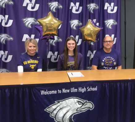 Makiah Otto signed her Letter of Intent to play tennis for Minnesota State University, Mankato. Seated next to Makiah are her parents Alisa and Jeff Anderson.