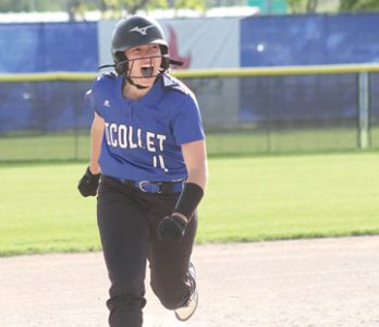 - Staff photos by Travis Rosenau Nicollet’s Hayley Selby yells in celebration on her way to third after hitting a home run against Cathedral on Thursday at Caswell Park in the Section 2A softball finals.
