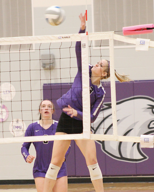 Amber Lee led the Eagles with 34 set assists and eight digs. Ella Freiderich had 20 digs, Bertrang added 12 kills and Hulke had nine digs, four kills and four aces. Ella Landsteiner had seven kills and Emma Gieseke added five kills.