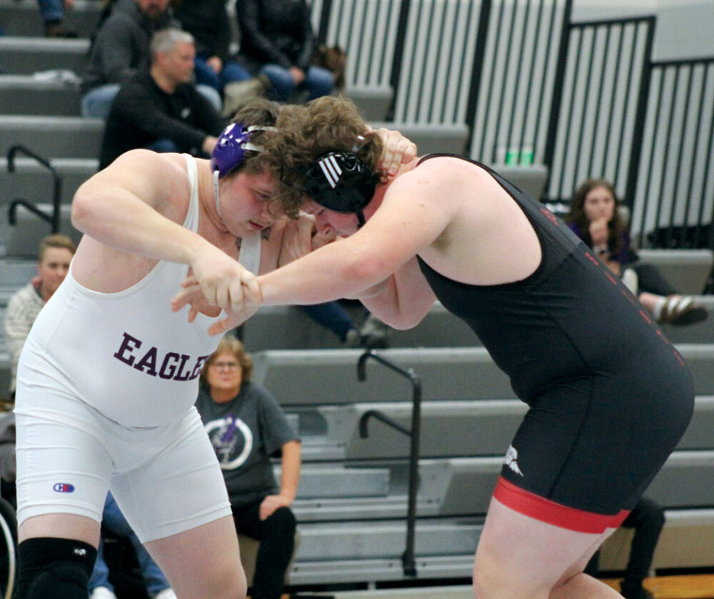 Jared Hunter got a 9-0 major decision over Dirk Haynes at 132 to put the Cobras back in front 10-9 before Logan Lee got a third-period reversal to lift himself to a 4-2 decision over Tucker Renquist at 138 and put NUA ahead 12-10. Winsten Nienhaus’ 18-5 major decision over Noah Holmberg at 145 was follow by a 4-0 decision for Lane Ruch over Eagan Maras to give the Eagles a 19-10 cushion. The cushion got wider from there out as Jamisen Frederickson (160) and Wyatt Pollard (170) both accepted forfeits for NUA. Ty Frederick pinned Graycen Hansen at 182 in 1:49 in the final match of the dual as Ethan Lieb (195), Henry Waloch (220) and Evan Thompson (285) all accepted forfeits. Windom/MLA was penalized a point for a wrestler having a strap down that led to the final 55-9 score.