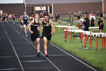 Perhaps the best battle of the meet happened in the boys 1,600 meters where River Valley sophomore Noah Christensen came from behind to edge sophomore teammate Matt Groebner. Christensen finished in 4:57.59. Groebner was second in 4:58.06.