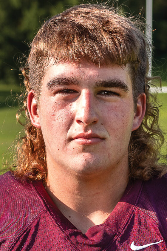 Logan Mielke, defensive lineman and tight end for the New Ulm Cathedral Greyhounds, played a key role in the Greyhounds’ OT win over Mountain Lake Area last Friday. His overtime sack helped Cathedral pick up the opening-week win in its first-ever nine-man football game.