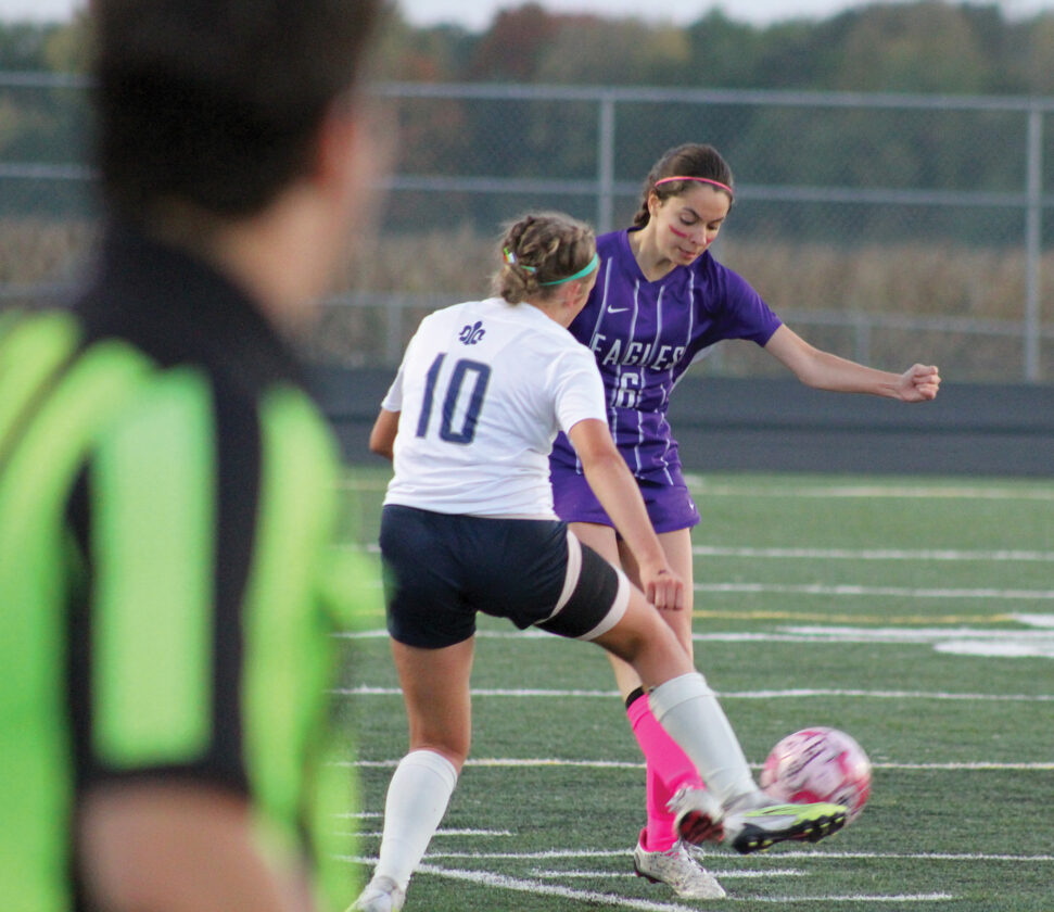 The St. Peter Saints’ chatter on Tuesday night at New Ulm High School led to crisp passing and a strong attack as they held off the New Ulm Eagles 2-1 in a Big South Conference girls soccer game.