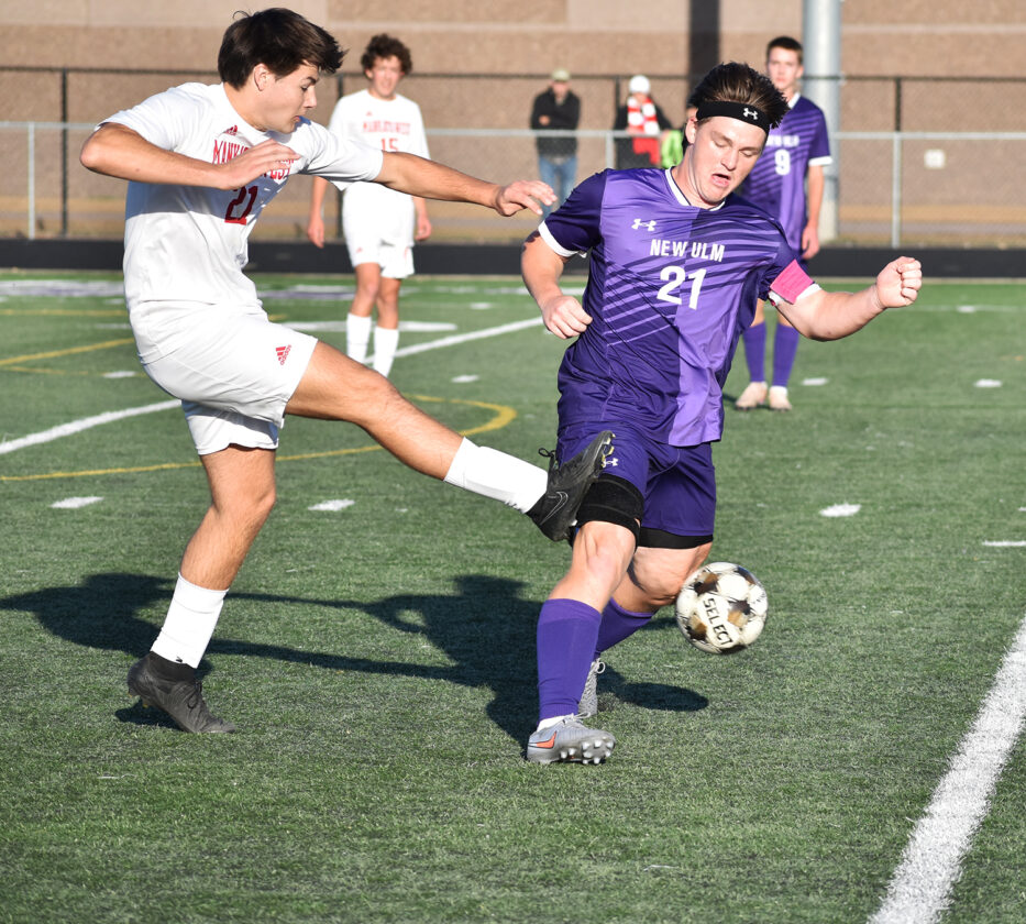 “They were rock-solid,” New Ulm head coach Tim Plocher said. “The last four games we didn’t play the best, and I told them we had to make sure we had each other’s backs and we covered where our weakness were, and they did a really good job of that. There were times where we had a guy come up, and there was an opportunity where Cole [Frederick] had a couple of shots coming up and our midfielder dropped into support.