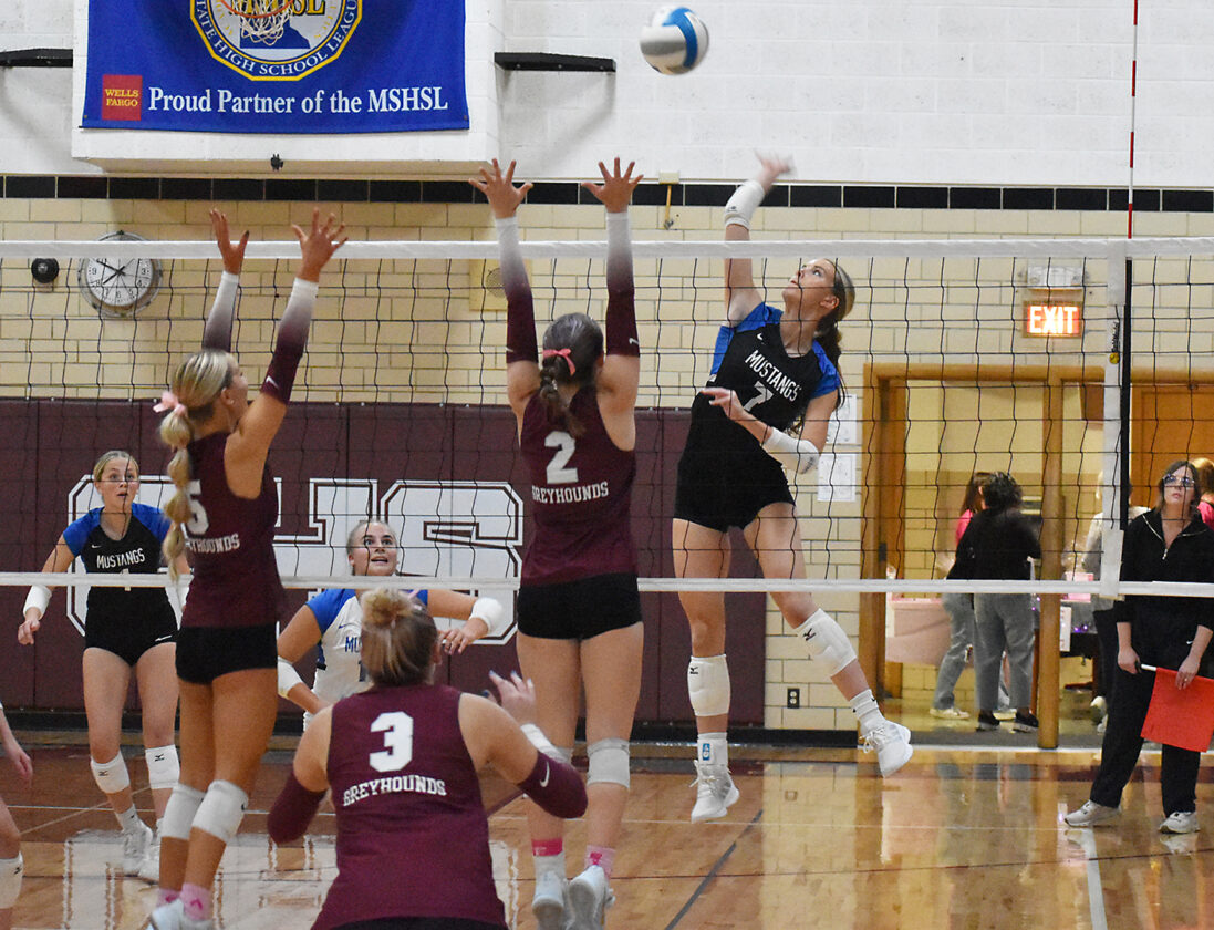 Shay Wilfahrt led the Greyhounds with 13 kills and 10 digs, while Ava Krueger had four kills, an ace and four digs. Margo Finstad had four kills, 10 set assists, an ace and eight digs, and Abbey Hillesheim had nine set assists, 10 digs, and ace and a block.