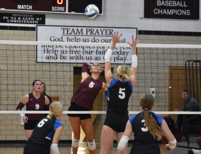 Lauren Hubin led the Mustangs 13 kills, 12 digs and three aces, while Lily Hubin had 11 kills, nine digs, five aces and 17 set assists. Chloe Schultz had seven kills and two blocks, while EB Ovitt had three kills, four digs and 14 set assists. Kelsey Ulrich added 20 digs and five aces.