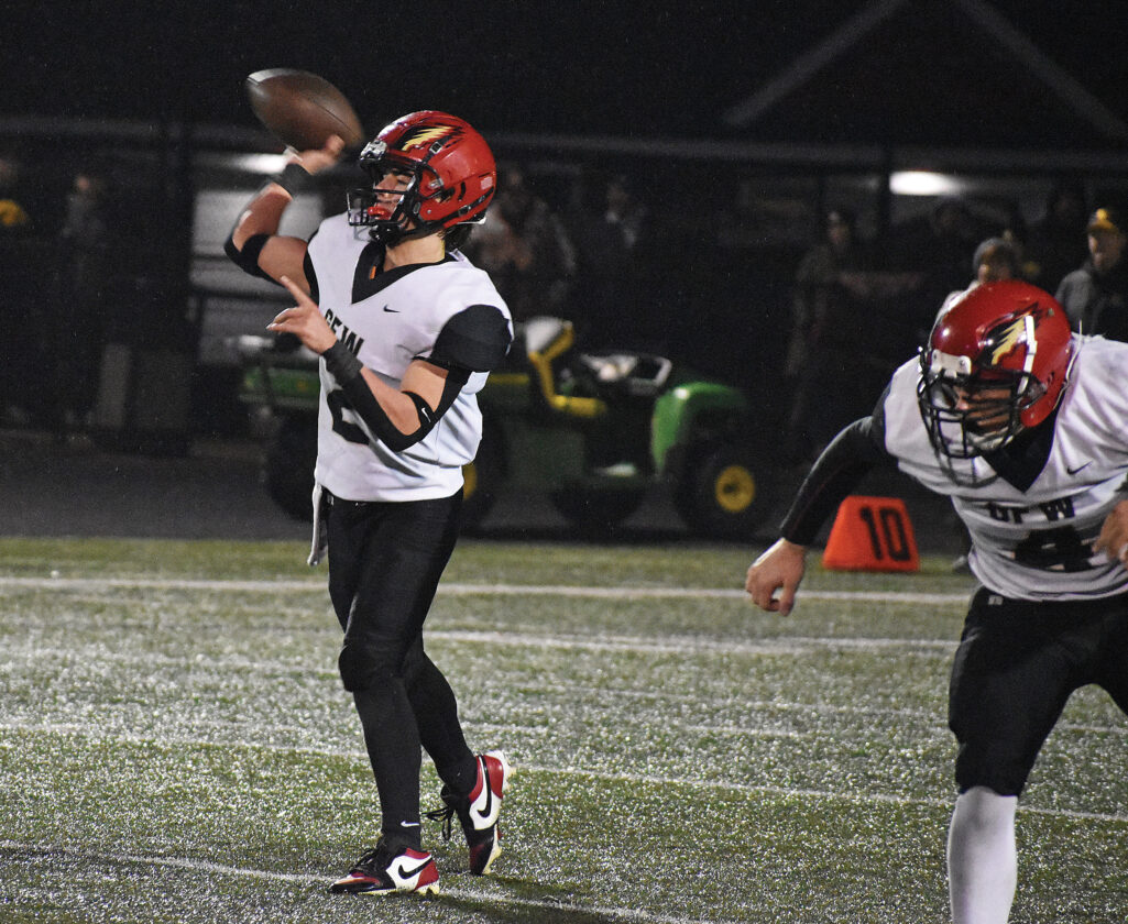 - Staff photo by Ari Selvey Gibbon-Fairfax-Winthrop’s Owen Swenson throws a pass during the Section 2A Football Championship game against Lester Prairie Friday at New Prague High School.