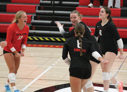 The Knights were led by Elsa Brauer and Kiara Humann, who each had six kills, while Brauer added a block. Ella Walz and Kourtney Zech each had nine set assists for MLC, with Walz adding three kills. Anna Kieselhorst had a team-high seven digs and two aces, Hannah Rodmyre had two blocks and two kills and Greta Nolte added two kills.