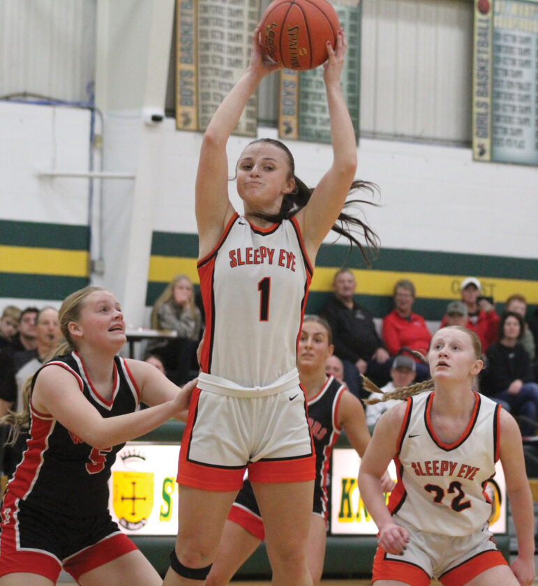 Jace Schauman led Sleepy Eye with 10 points, four rebounds and two steals, while Taylor Berkner had 7 points, nine rebounds and two assists and Alexis Hoffman had 7 points. Destiney Dittbenner added 3 points, seven rebounds and four steals for Sleepy Eye, which fell to 1-1 on the season with the loss.