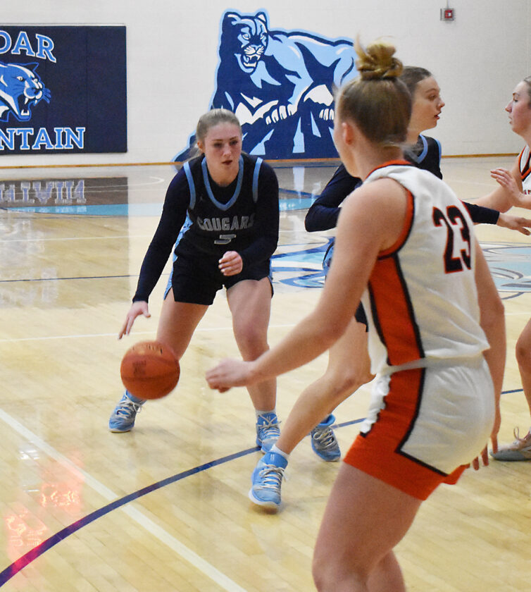 A driving layup by Steffl put Cedar Mountain up 54-36, and the Cougars continued to push with a 3-pointer from Lueck and layups from Hamre and Lueck for a 61-38 lead. Cedar Mountain’s Laney Heibel made two layups as time wound down in the game.