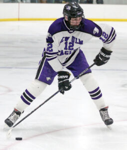 The Eagles were on the attack from the start, even before their first power-play chance of the night. After getting on the power play 1:27 into the game, Kayden Klein fired a wrister from the faceoff circle under Hoven for a 1-0 New Ulm lead, assisted on by Mason Buegler and Bodey Hagberg.
