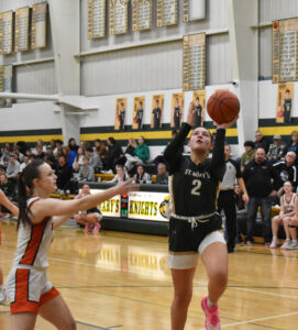 St. Mary’s got the ball rolling again with a layup and a 3 from Schieffert, and St. Mary’s went on a 14-0 run that put them up 47-16, closed out with a layup in transition from Morgan Mathiowetz. Sleepy Eye got a 3 to fall from Alexis Hoffmann before halftime, with the Knights holding onto a 50-24 lead.