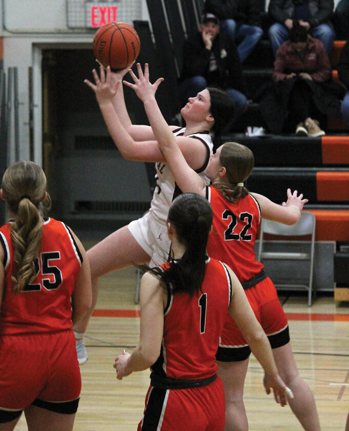 Wilfahrt extended the Greyhounds’ lead to 30-16 with a 3 to open the second half. After a free throw from Berkner, Hoffman put in extra effort to save a loose ball headed out of bounds. After tracking the ball down, Hoffman no-look lobbed the ball back over her head, which was scooped up by Jace Schauman in traffic and then fed to Jaelynn Schauman for a quick bucket to have Sleepy Eye down 30-19.