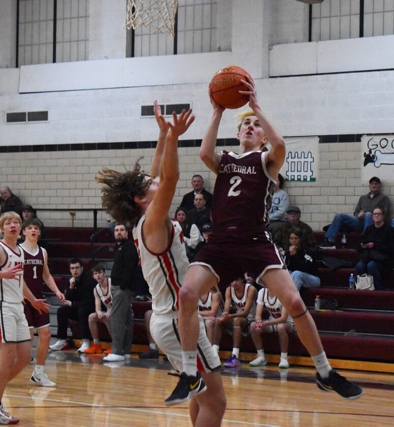 Anderson and Collins opened the second half with a pair of layups and a 33-26 Cathedral lead, and a mid-range shot from Anderson increased that lead to 35-27. BOLD went on a quick 8-3 run to trim the lead to 38-37, and while Anderson hit three free throws, BOLD seized a 47-41 lead with a 7-0 run as Cathedral called a timeout with 6:38 to play. BOLD’s Aiden Lerud hit two 3-pointers to extend that lead out to 52-41, but Cathedral responded with free throws from Anderson and a layup from Goblirsch to cut the lead down to 52-47. BOLD extended that lead back to 56-47 on a pair of layups.