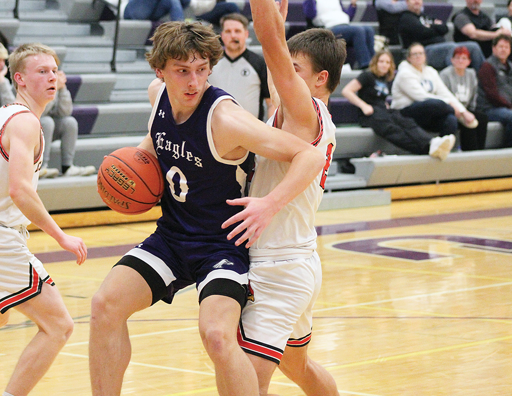 NEW ULM — With a team that can and did hit from the 3-point line like Redwood Valley on Monday night, the New Ulm Eagles were able to counter that with a pesky defense and an offensive focus inside the paint.