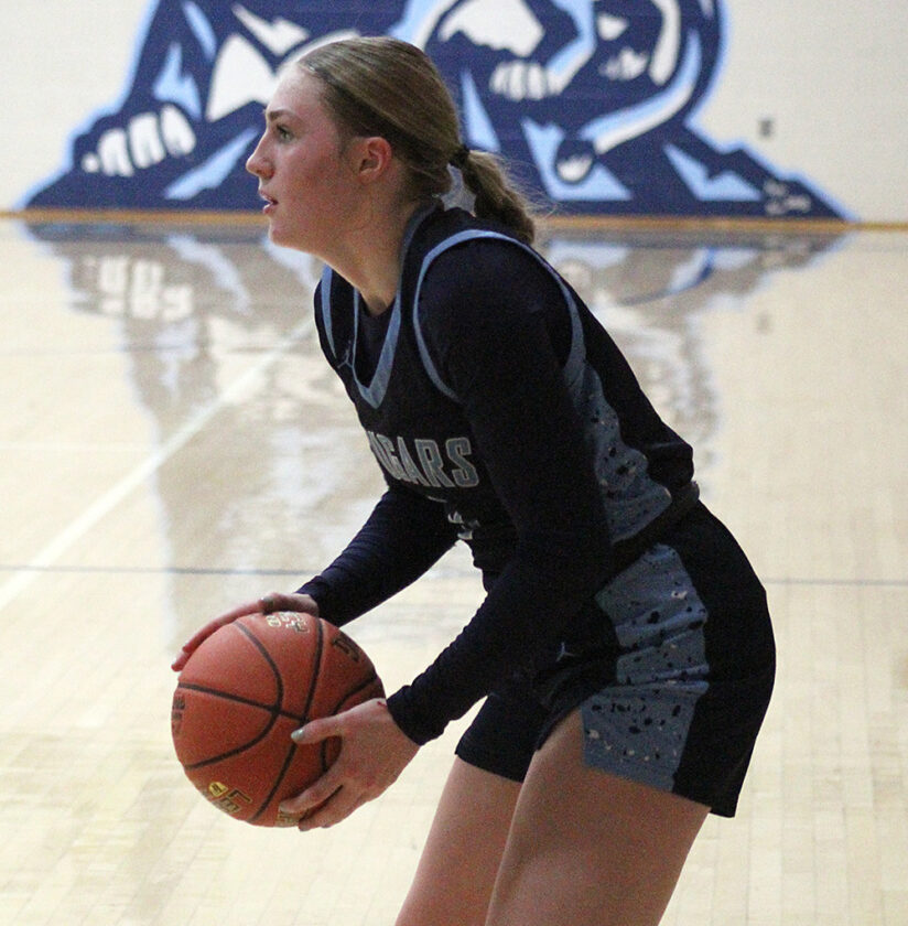 File photo by Travis Rosenau Cedar Mountain’s Kendra Erickson prepares to shoot a 3 during a home game against Sleepy Eye St. Mary’s on Feb. 3 in Morgan. She passed 1,000 points for her career on Friday in a home win against Lester Prairie.