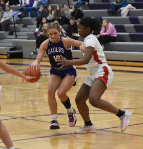 NEW ULM — Needing 18 points to reach 2,000 for her career, New Ulm’s Brooklyn Lewis couldn’t have asked for a stronger start to the game as the Eagles faced off against Coon Rapids in a nonconference girls basketball game on Friday.