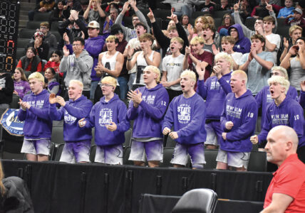 Staff photo by Ari Selvey The New Ulm Area wrestling team and fans cheer during the Class AA State Team Wrestling Championship Thursday at Grand Casino Arena on Thursday.