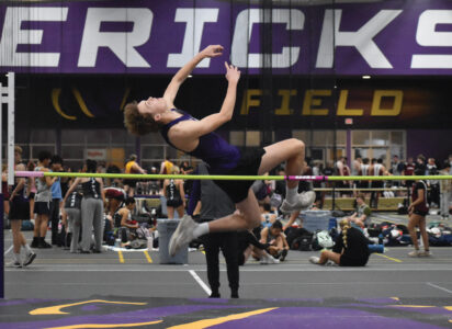 - Staff photo by Ari Selvey New Ulm’s Noah Mertz jumps in the high jump at the Old SCC Indoor Track Meet on Friday at Minnesota State University, Mankato.