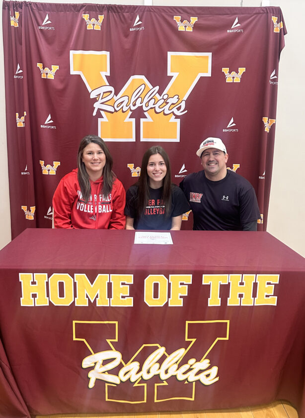 Submitted photo Audrey Johnson of Wabasso has signed her letter of intent to play volleyball at University of Wisconsin-River Falls. Left to Right: Barb Johnson (Coach and Mother), Audrey Johnson and Mike Johnson (Father).