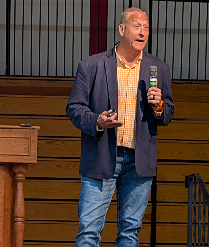 File photo by Travis Rosenau Ross Bernstein speaks during the New Ulm Club Athletic Banquet this past Saturday at Martin Luther College. Bernstein talked about the importance of perseverance and overcoming failures.