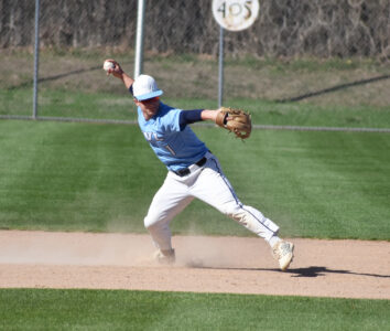 Staff photo by Ari Selvey Minnesota Valley Lutheran’s Connor Bode makes a throw over to first during a nonconference baseball game against Sleepy Eye Friday at Johnson Park.